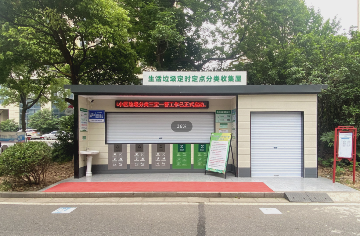 江左岸位于澄江街道黃山社區(qū),作為部隊經(jīng)濟適用房,業(yè)主多為隨軍家屬,老年人偏多,小區(qū)由兩排三幢高層組成。2023年初,該小區(qū)正式實施“四分類”定時定點投放,設(shè)置1座定時定點投放屋,投放時間為上午6:30-8:30、下午18:00-20:00,其他垃圾和廚余垃圾每日兩清運。