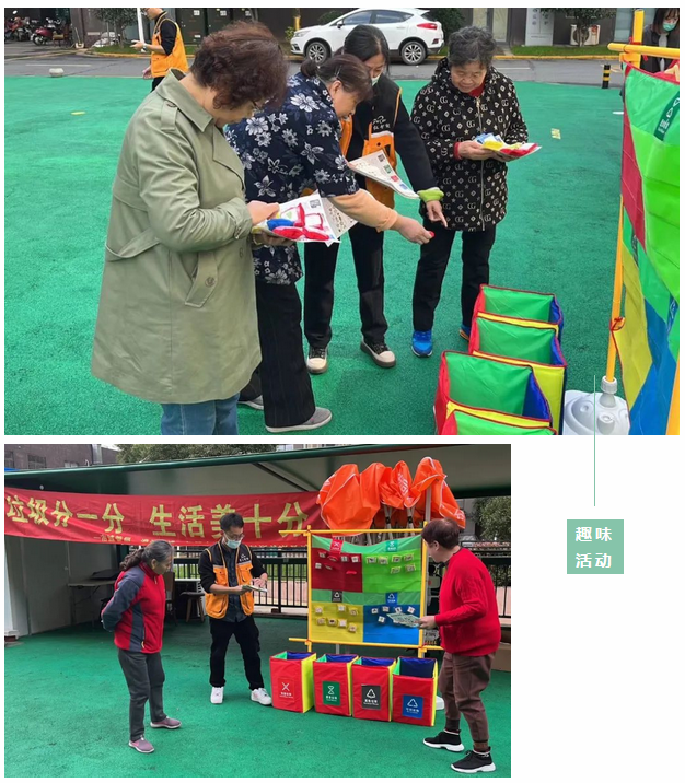 活動(dòng)以垃圾分類知識(shí)宣傳+趣味小游戲的形式開展。首先由工作人員為居民講解生活垃圾為什么要進(jìn)行分類、生活垃圾怎樣進(jìn)行分類,以及垃圾分類投放、分類收運(yùn)處置等內(nèi)容,增加居民垃圾分類意識(shí)。緊接著進(jìn)入趣味游戲環(huán)節(jié),通過(guò)投遞垃圾沙包的形式加深對(duì)生活垃圾分類的認(rèn)識(shí),使居民對(duì)于各類生活垃圾該如何進(jìn)行投放有了進(jìn)一步的認(rèn)識(shí)。