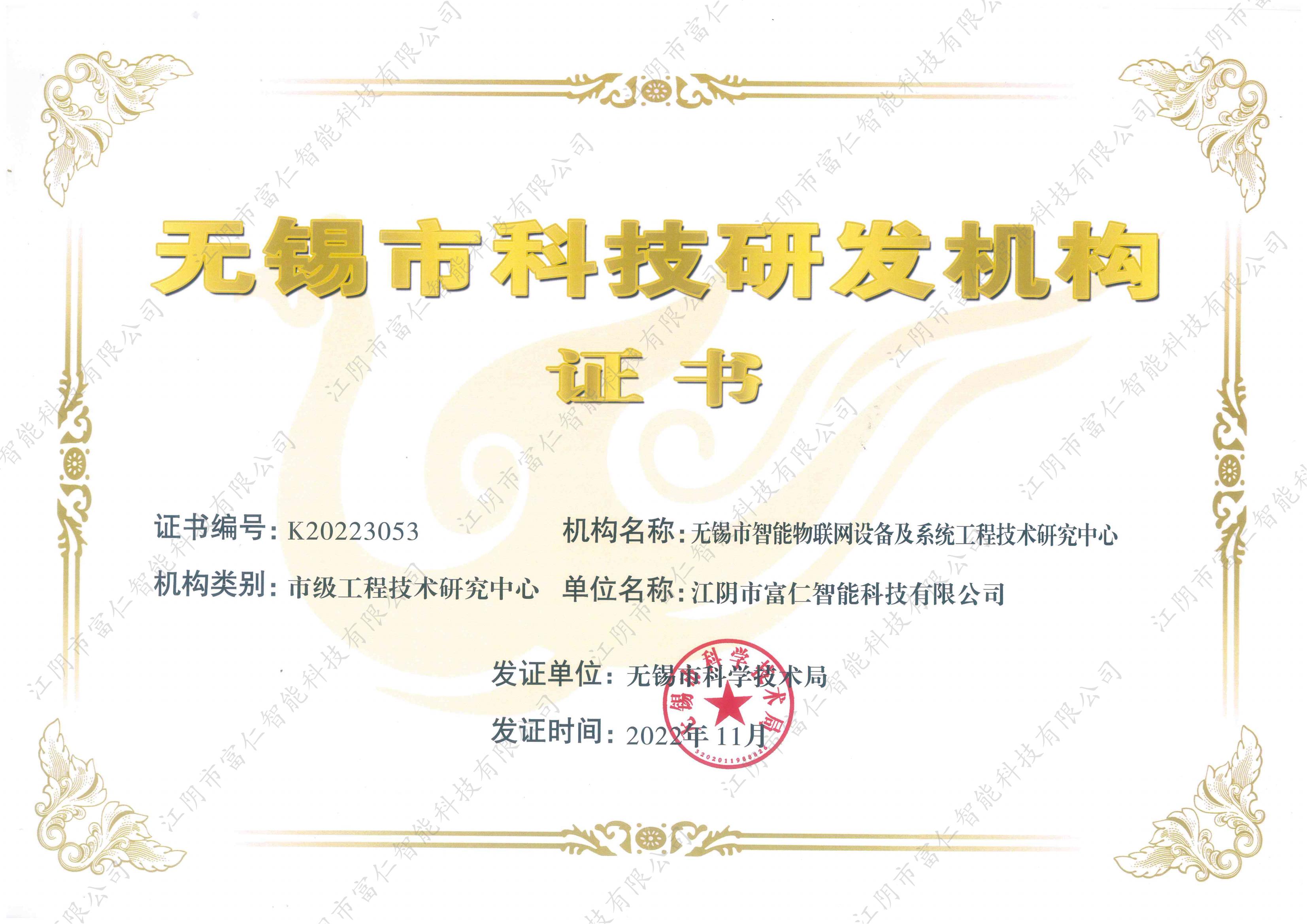 日前,富仁智能“無(wú)錫市智能物聯(lián)網(wǎng)設(shè)備及系統(tǒng)工程技術(shù)研究中心”(以下簡(jiǎn)稱“中心”)被無(wú)錫市科學(xué)技術(shù)局認(rèn)定為2022年度無(wú)錫市工程技術(shù)研究中心項(xiàng)目。此次成功獲評(píng),是無(wú)錫市科學(xué)技術(shù)局對(duì)富仁智能團(tuán)隊(duì)創(chuàng)新能力、技術(shù)成果轉(zhuǎn)化等企業(yè)綜合實(shí)力的權(quán)威肯定。