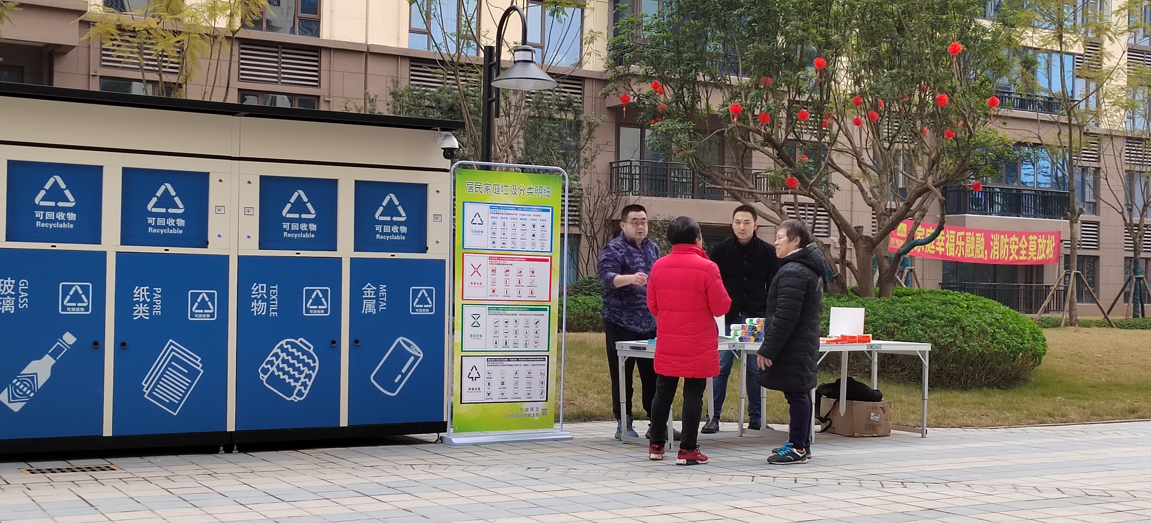 此外,小區(qū)里還配備了垃圾分類督導(dǎo)員,承擔(dān)對小區(qū)居民開展圾分類專業(yè)知識的宣傳策劃普及工作,按時對居民開展垃圾分類的具體指導(dǎo),提高居民的參與率和參與度,從而全面實施居民垃圾分類。